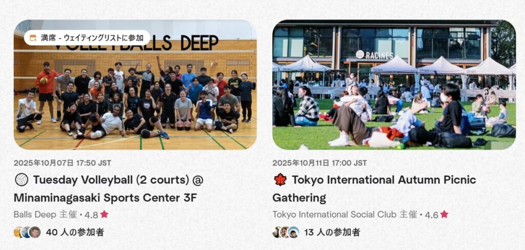 特徴的なのは、趣味や学びを通じて人々が出会えるという点。英語学習に特化したイベントだけでなく、料理やスポーツなど、様々な興味関心でつながれます。最近は、オンラインイベントも開催されているようです。